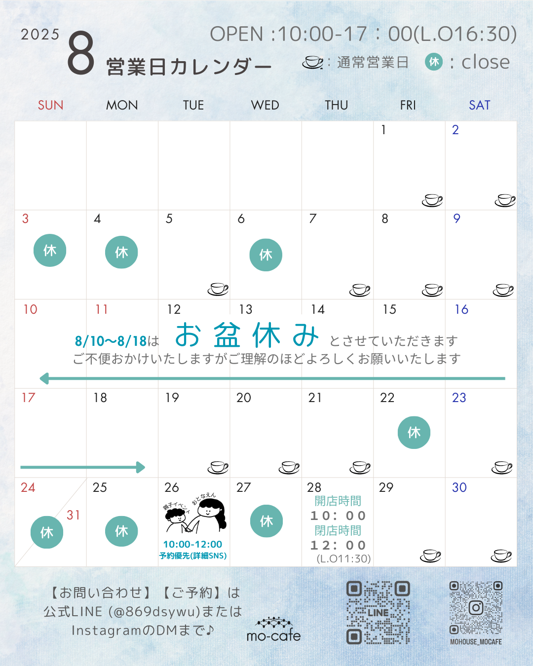 休み期間中のお問い合わせは、19日以降にお返事いたしますのでご了承ください。